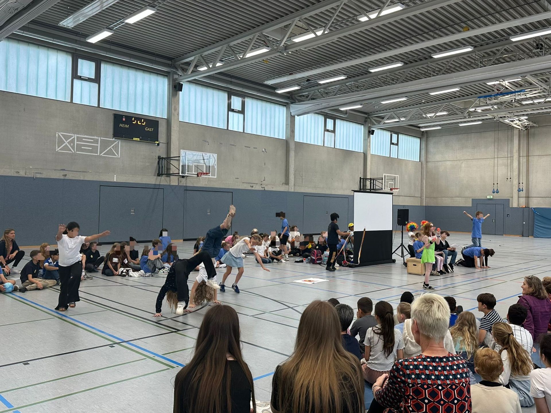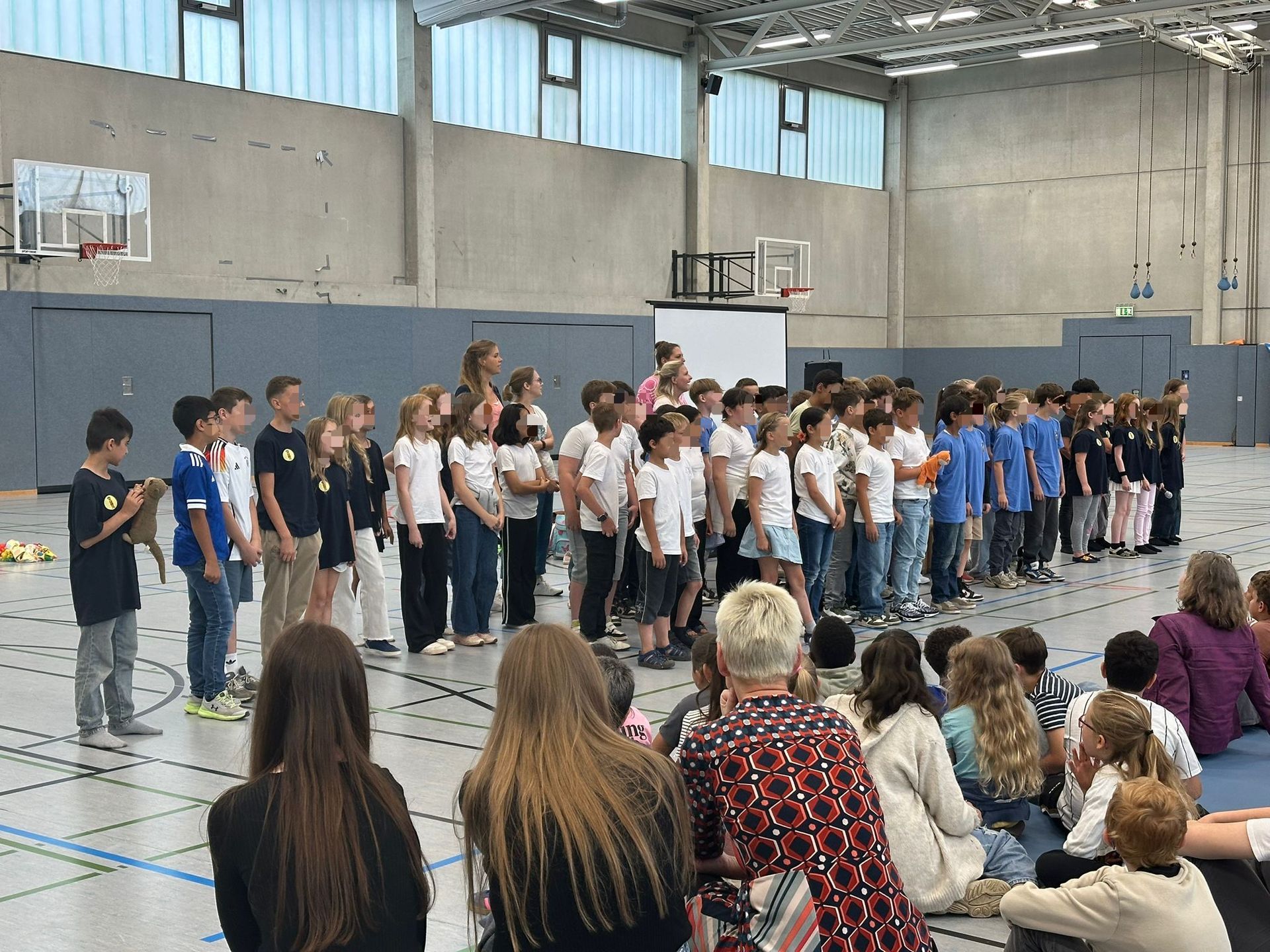 Am letzten Schultag vor den Sommerferien hieß es wieder einmal Abschied nehmen. Im Rahmen eines feierlichen ökumenischen Gottesdienstes und einer fröhlichen Feier in der Turnhalle verabschiedeten wir die Mädchen und Jungen des 4. Jahrgangs. Gemeinsam wurden noch einmal die Highlights der 4 Grundschuljahre in den Blick genommen. Die Klassenfahrt nach Haltern, das Zirkusprojekt, der Spendenlauf und vieles mehr werden sicherlich in Erinnerung bleiben.