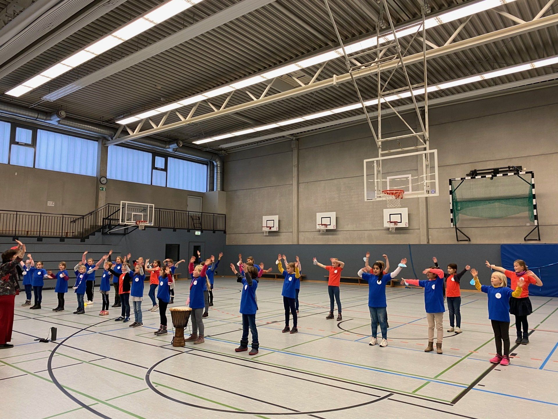 Am 15.10.2021 hat Martina Braun als neue Schulleiterin ihren Dienst an der PGS angetreten. Sie wurde in den letzten Tagen von der Schulaufsicht, dem Lehrerkollegium, der Schulpflegschaft stellvertretend für alle Eltern und den Schülerinnen und Schülern herzlich willkommen geheißen. Bei der Begrüßung in der großen Sporthalle führte die Klasse 4a ein Rhytmical auf und der Jekiss-Schulchor sang für Frau Braun das Karibuni-Lied. Anschließend hat Frau Braun den Kindern auf anschauliche Weise ein wenig von sich erzählt. Wenn Sie Frau Braun kennenlernen möchten, finden Sie in der folgenden Datei eine kurze Vorstellung.
