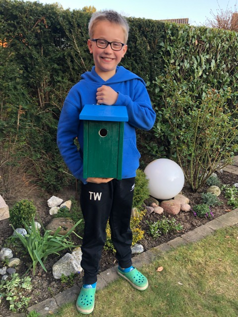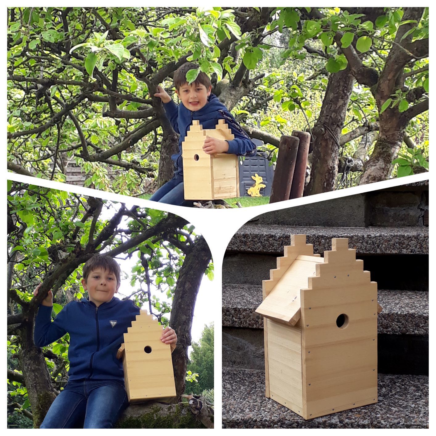 Den Nistkasten kann man auch mit wasserfester Farbe bunt anmalen und